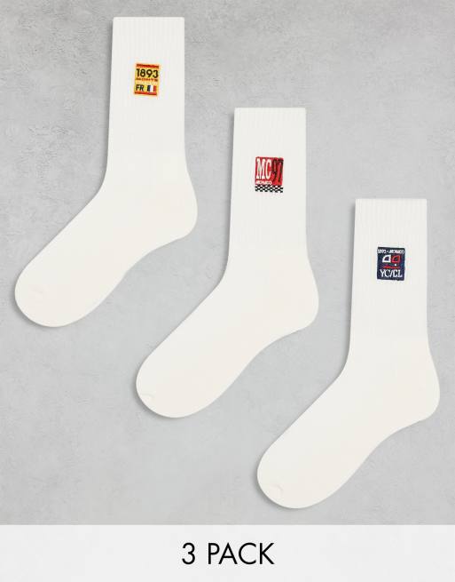 ASOS DESIGN - Set van 3 paar sportsokken met jachtborduursels in crème
