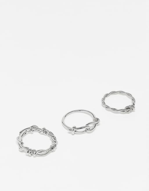 ASOS DESIGN - Set van 3 ringen met draaddesign in zilver