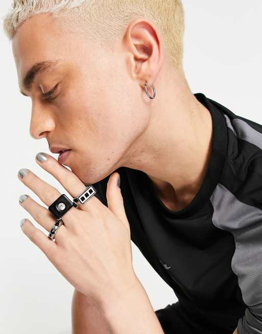 ASOS DESIGN - Set van 3 ringen van kunststof en metaal in zwart en zilver