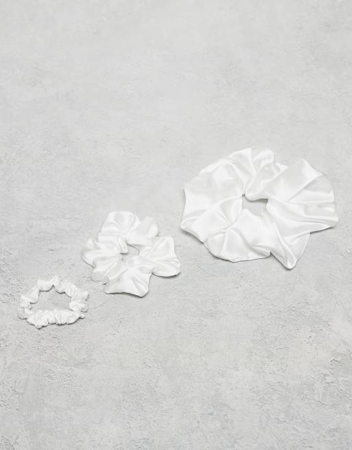 ASOS DESIGN - Set van 3 satijnen scrunchies in ivoorwit