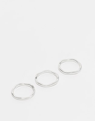 ASOS DESIGN - Set van 3 stapelbare ringen in gepolijst zilverkleur