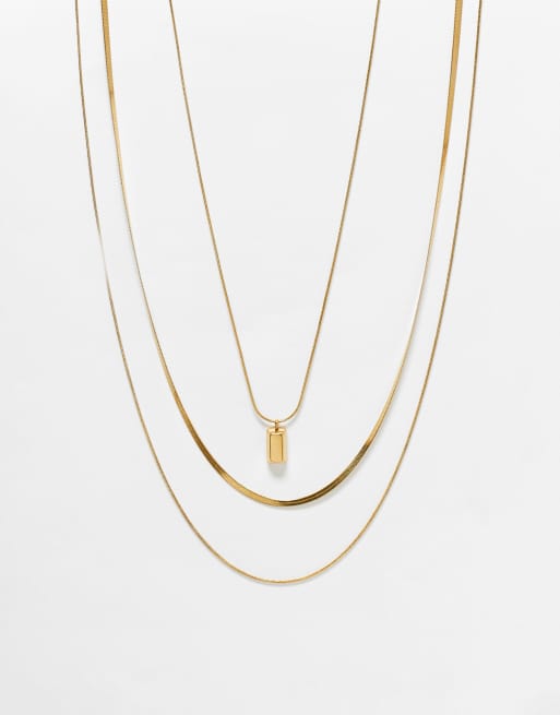 ASOS DESIGN - Set van 3 waterbestendige roestvrijstalen halskettingen met rechthoekige hanger in goudkleur