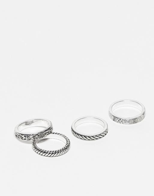 ASOS DESIGN - Set van 4 gemengde skinny ringen in zilver