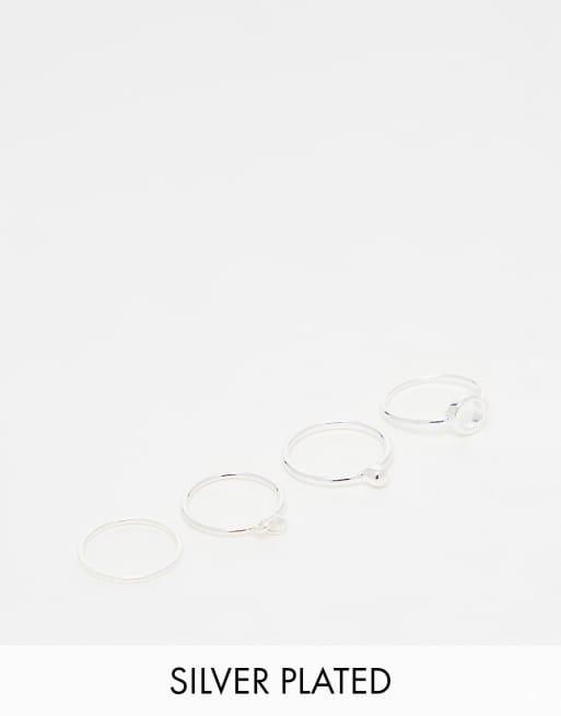 ASOS DESIGN - Set van 4 verzilverde ringen met delicaat ontwerp