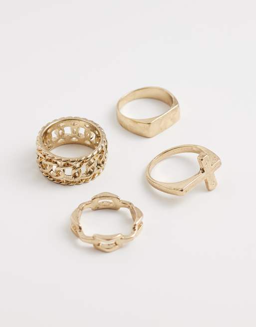 ASOS DESIGN - Set van 4 zegelringen met kruis en ketting in goud