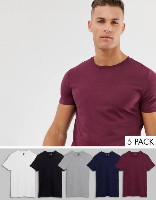 ASOS DESIGN - Set van 5 T-shirts met ronde hals, bespaar