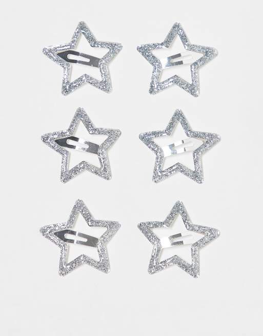 ASOS DESIGN - Set van 6 haarclips met glitterster in zilverkleur