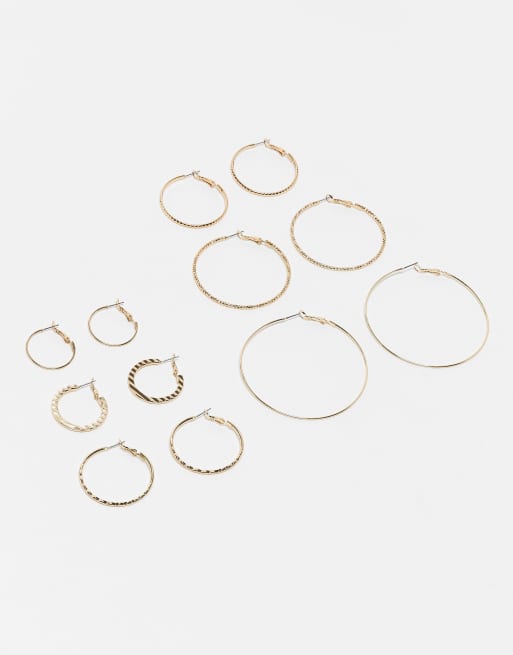 ASOS DESIGN - Set van 6 paar dunne oorbellen met getextureerd ontwerp in goudkleur