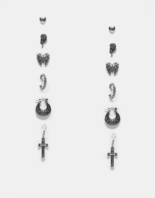 ASOS DESIGN - Set van 6 paar oorbellen met verschillende motieven in gepolijste zilverkleur