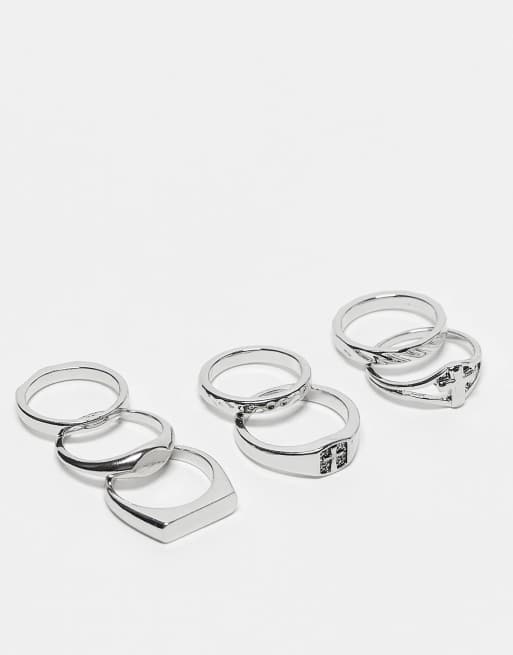 ASOS DESIGN - Set van 7 bandringen met kruisdetail in zilver