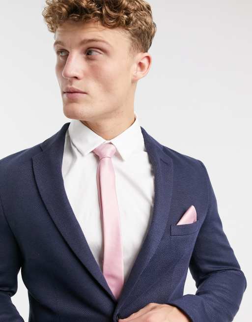 ASOS DESIGN - Set van satijnen smalle stropdas en pochet in roze