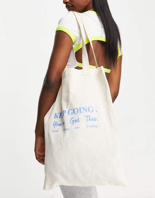 ASOS DESIGN - Shopper in naturel met 'Keep going' print