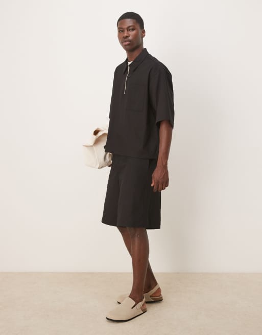 ASOS DESIGN - Short met wijde pijpen in zwart, deel van co-ord set