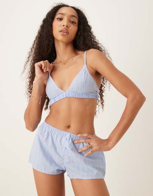 ASOS DESIGN - Sidney - Geweven gestreepte triangel bh in blauw