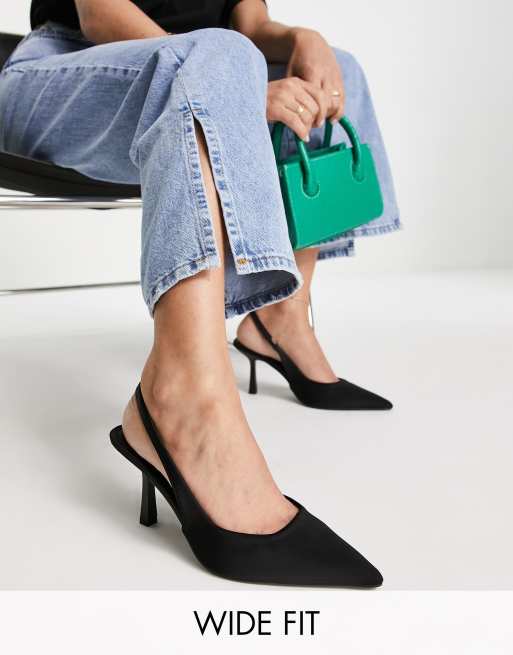 ASOS DESIGN - Simba - Slingback schoenen met brede pasvorm en naaldhak in zwart
