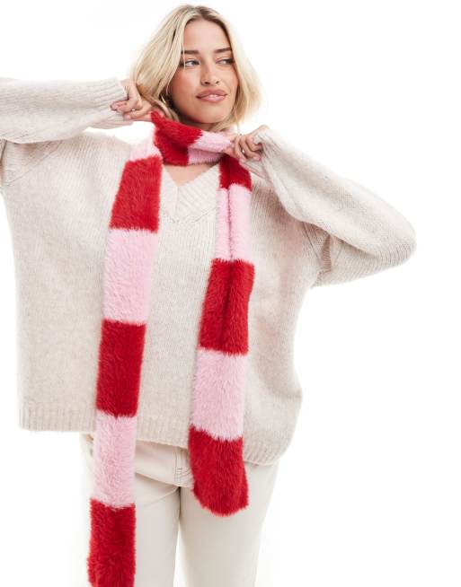 ASOS DESIGN - Sjaal met brede strepen in lichtroze en rood