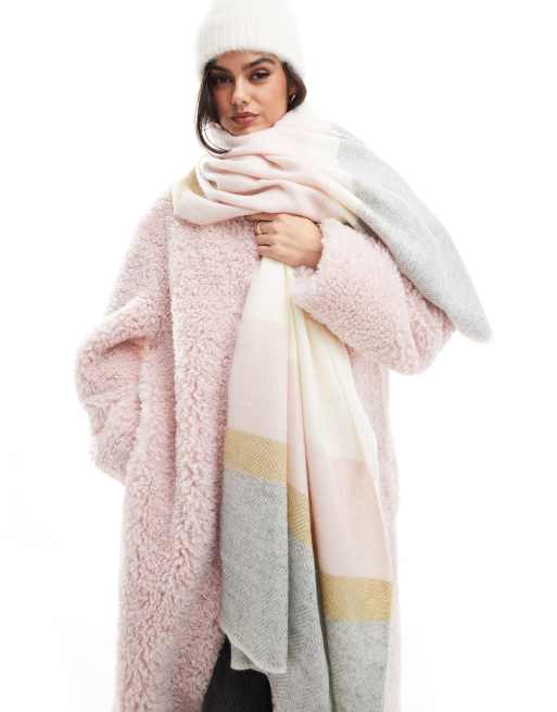 ASOS DESIGN - Sjaal met visgraatmotief in pastelroze en grijs