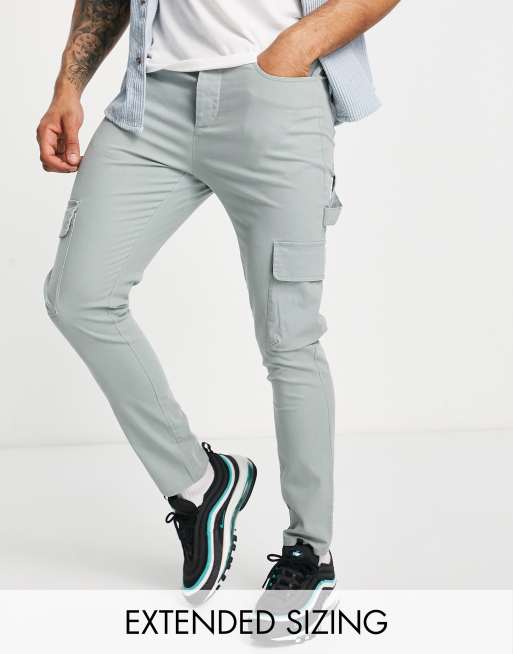 ASOS DESIGN - Skinny cargobroek in khaki met wassing