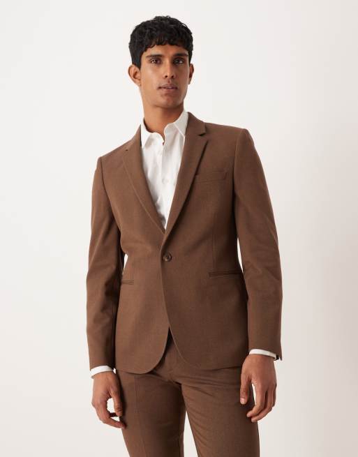 ASOS DESIGN - Skinny colbert in bruine keperstof