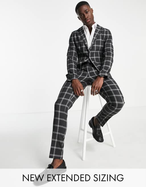 ASOS DESIGN - Skinny colbert met Prince of Wales ruit in antraciet