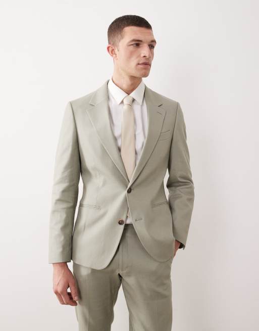 ASOS DESIGN - Skinny colbert van linnenmix in saliegroen