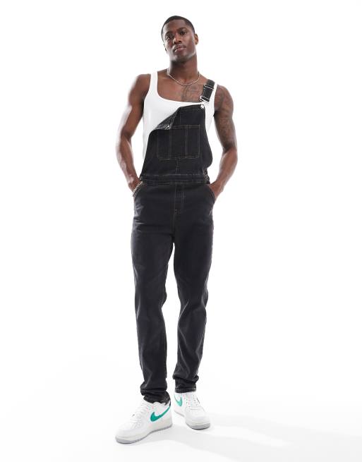 ASOS DESIGN - Skinny-fit denim tuinbroek in zwart