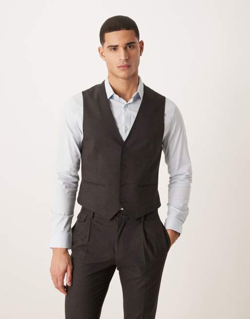 ASOS DESIGN - Skinny-fit gilet met wollook en visgraatmotief in antracietgrijs