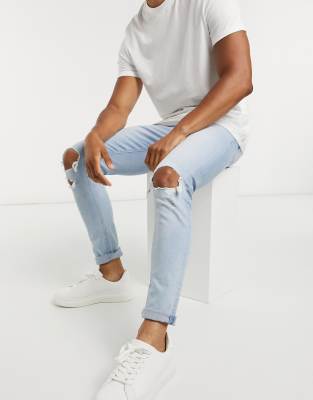 ASOS DESIGN - Skinny-fit jeans met scheuren op de knieën in lichtblauwe wassing