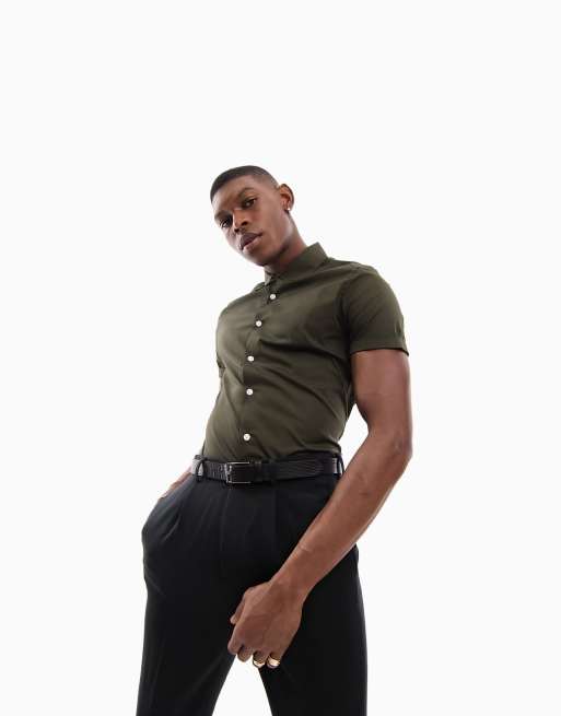 ASOS DESIGN - Skinny-fit overhemd in kaki