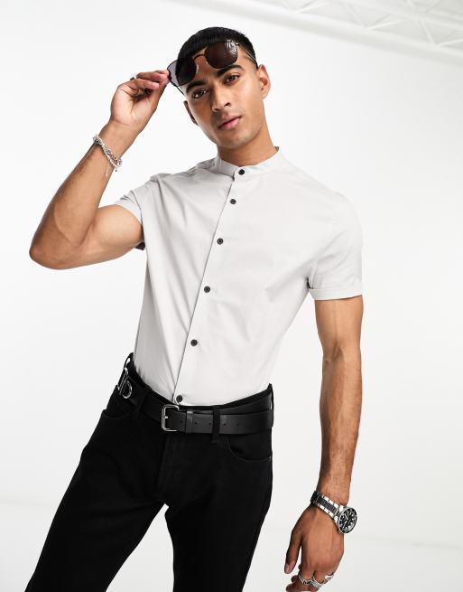 ASOS DESIGN - Skinny-fit overhemd zonder kraag in lichtgrijs