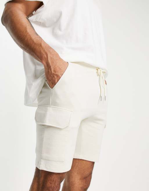 ASOS DESIGN - Skinny jersey short met cargozakken in beige