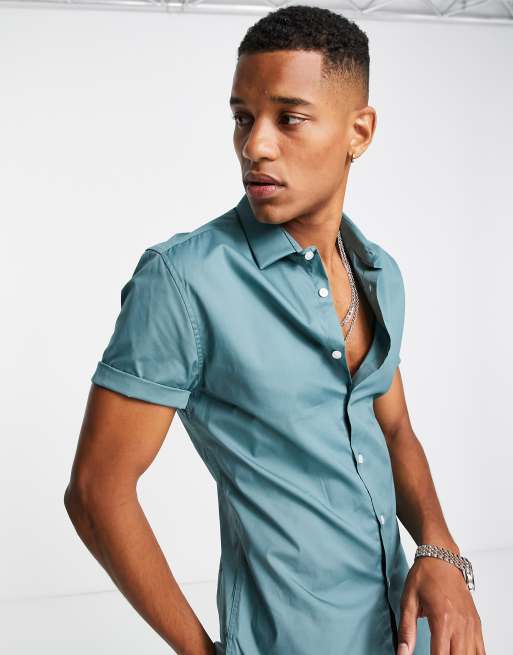ASOS DESIGN - Skinny overhemd in blauwgroen
