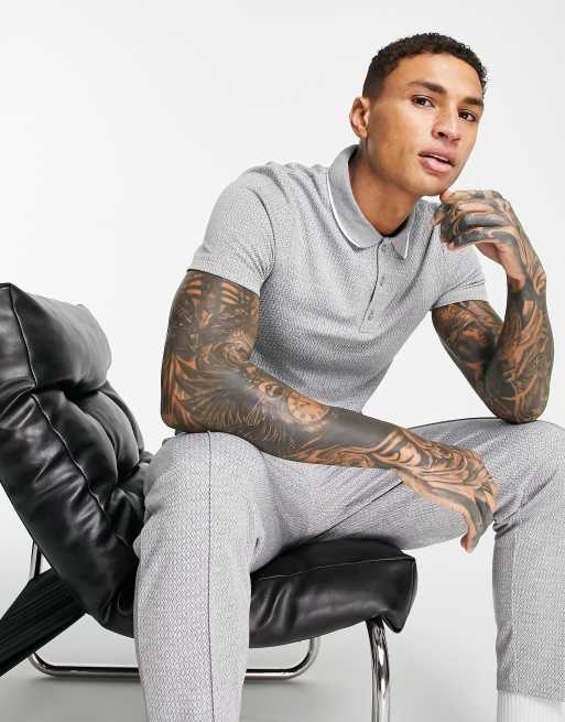 ASOS DESIGN - Skinny poloshirt in grijs jacquard, deel van co-ord set