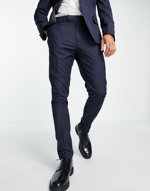 ASOS DESIGN - Skinny smokingbroek in marineblauw met satijnen zijstreep