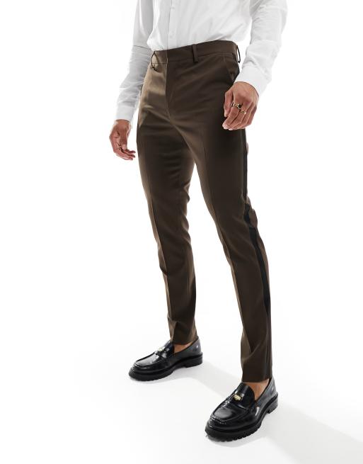 ASOS DESIGN - Skinny smokingpantalon in bruin