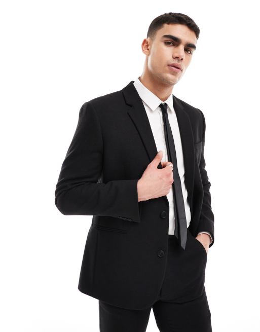 ASOS DESIGN - Slim-fit colbert van wolmix in zwarte keperstof