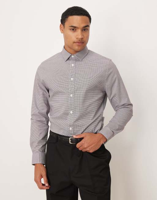 ASOS DESIGN - Slim-fit net geruit overhemd in marineblauw