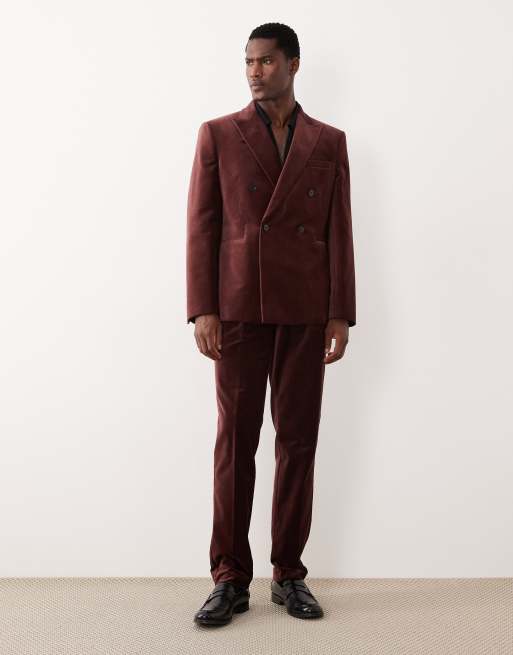 ASOS DESIGN - Slim-fit pantalon van katoen fluweel met plooi aan de voorkant in donkerbruin