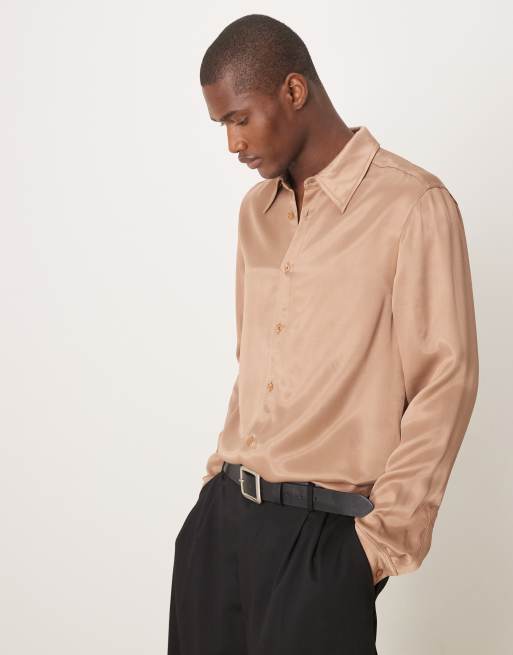ASOS DESIGN - Slim-fit satijnen overhemd in bruin