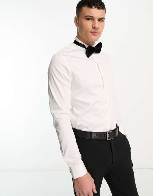 ASOS DESIGN - Slim-fit satijnen overhemd met vleugelkraag in wit