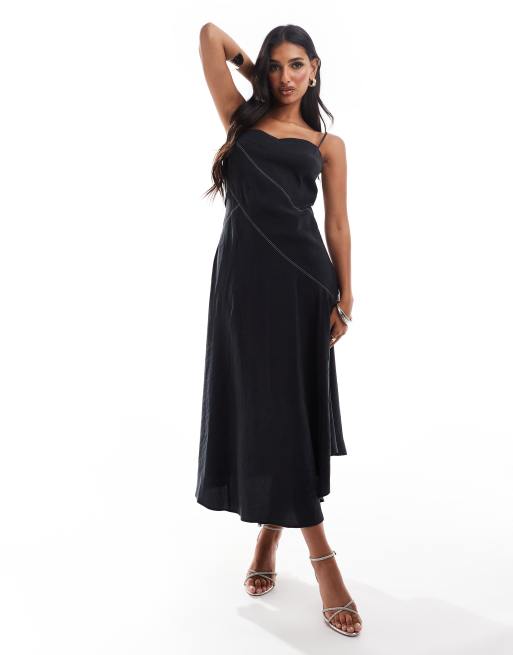 ASOS DESIGN - Slipdress met volle rok in zwart met contrasterende stiksels