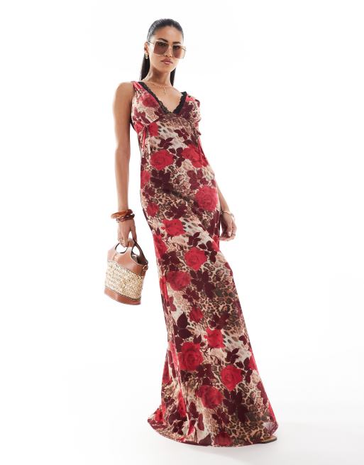 ASOS DESIGN - Slipdress van mesh met contrasterende kanten zoom en luipaard-bloemenprint