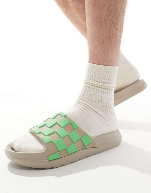 ASOS DESIGN - Slippers in stone met groen dambordmotief