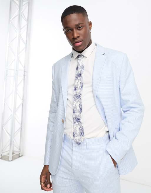 ASOS DESIGN - Smal colbert van linnen met fijne pied-de-poule print in blauw