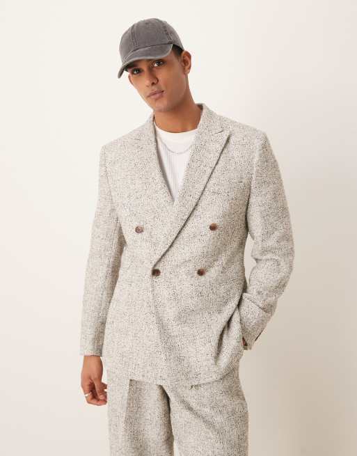 ASOS DESIGN - Smal double breasted colbert van getextureerde stof in wit en zwart