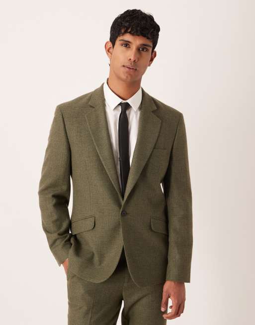 ASOS DESIGN - Smal geruit colbert in donkergroen