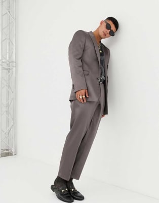 ASOS DESIGN - Smal hoogglanzend kostuum in donkergrijs satijn