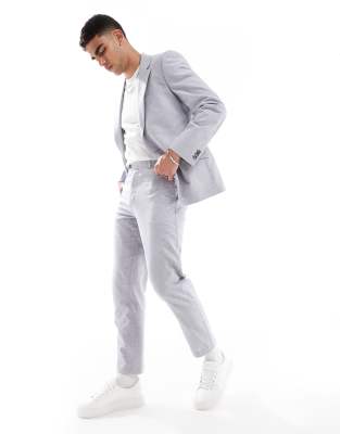 ASOS DESIGN - Smal pak van een linnenmix met pied-de-poule in grijs