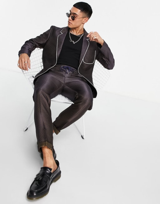 ASOS DESIGN - Smal pak van geometrisch jacquard in marineblauw