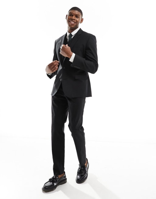 ASOS DESIGN - Smal pak van linnenmix in zwart